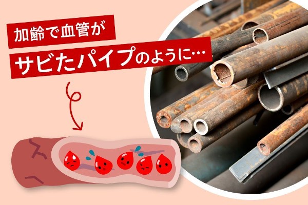 歳を重ねてくると、血管がサビついたパイプのような状態になってしまいます。